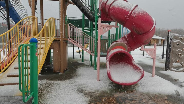 撮影:2025年12月12日 夏は子ども連れでにぎわった公園も冬はひっそり。 吹雪の中の遊具や東屋もどこか寂し気です。 雪が消えるまでのおよそ3か月間、公園は静寂に包まれます。