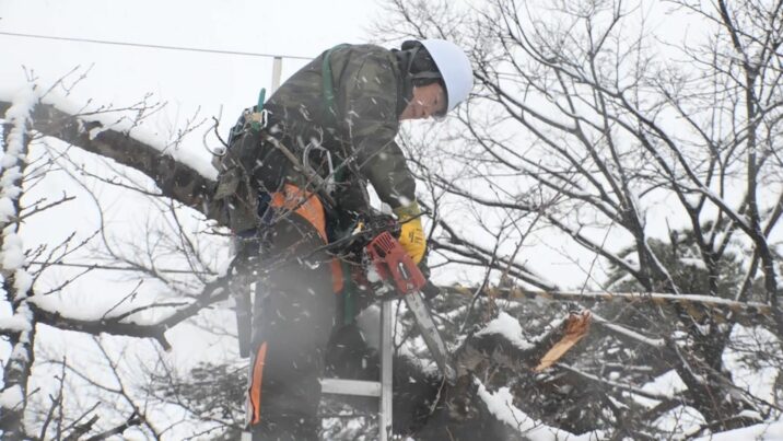 連日の大雪で、高田城址公園には雪が1メートルほど積もっています。およそ2か月後の高田城址公園観桜会に向け、サクラの手入れを専門で行なう「桜守」が、はしごに登ってサクラの不要な枝を切…