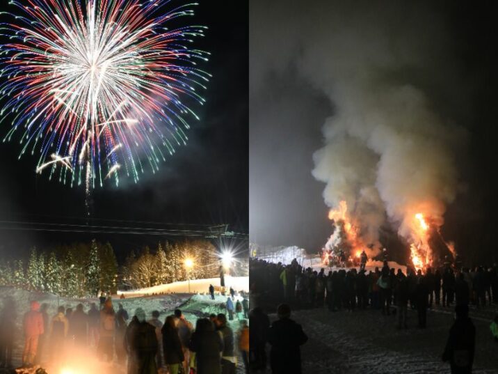 商売繁盛や五穀豊穣を祈願する小正月行事が体験できる「ダイナマイトカーニバル in SUGINOSAWA」が、1月17日(土)に妙高杉ノ原スキー場特設会場で開催されます。 花火の様子…