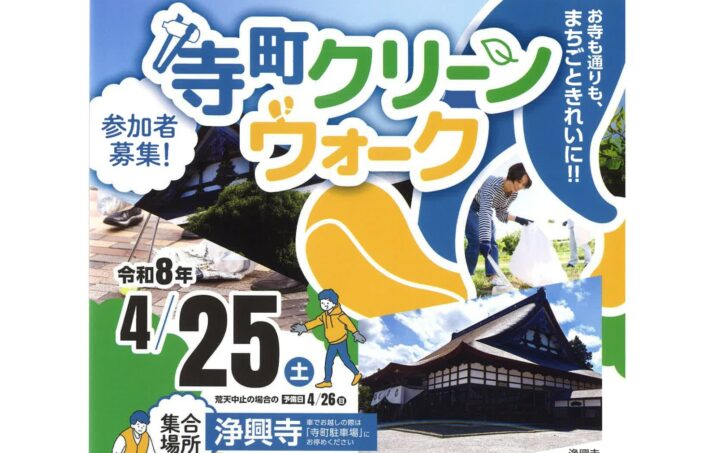 上越市寺町2丁目の「浄興寺」周辺で清掃活動を行う、上越青年会議所主催の「寺町クリーンウォーク」が4月25日(土)に開催されます。現在、参加者を募集しています。 クリーンウォークを企…