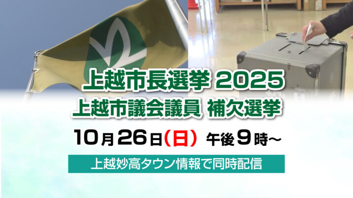 任期満了に伴う上越市長選挙が今月26日(日)に投票が行われ、即日開票されます。JCVでは、過去最多の6人が立候補する選挙の開票結果を当日午後9時から、上越市議会議員 補欠選挙の結果…