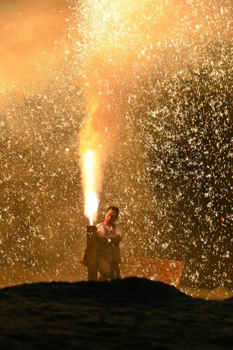 まつりのメインを飾るのは愛知県の三河伝統手筒花火連合会による手筒花火です。