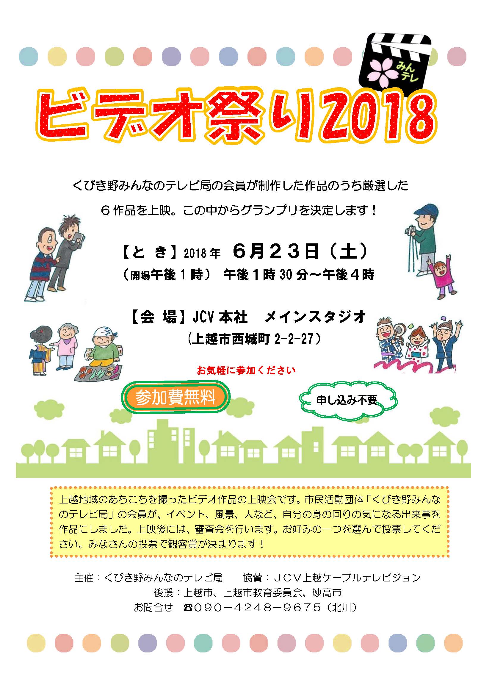 ビデオ祭りでは、みんテレの会員が制作し、昨年度JCVで放送された作品の中かから、厳選した6作品を上映。この中からグランプリが決定します!