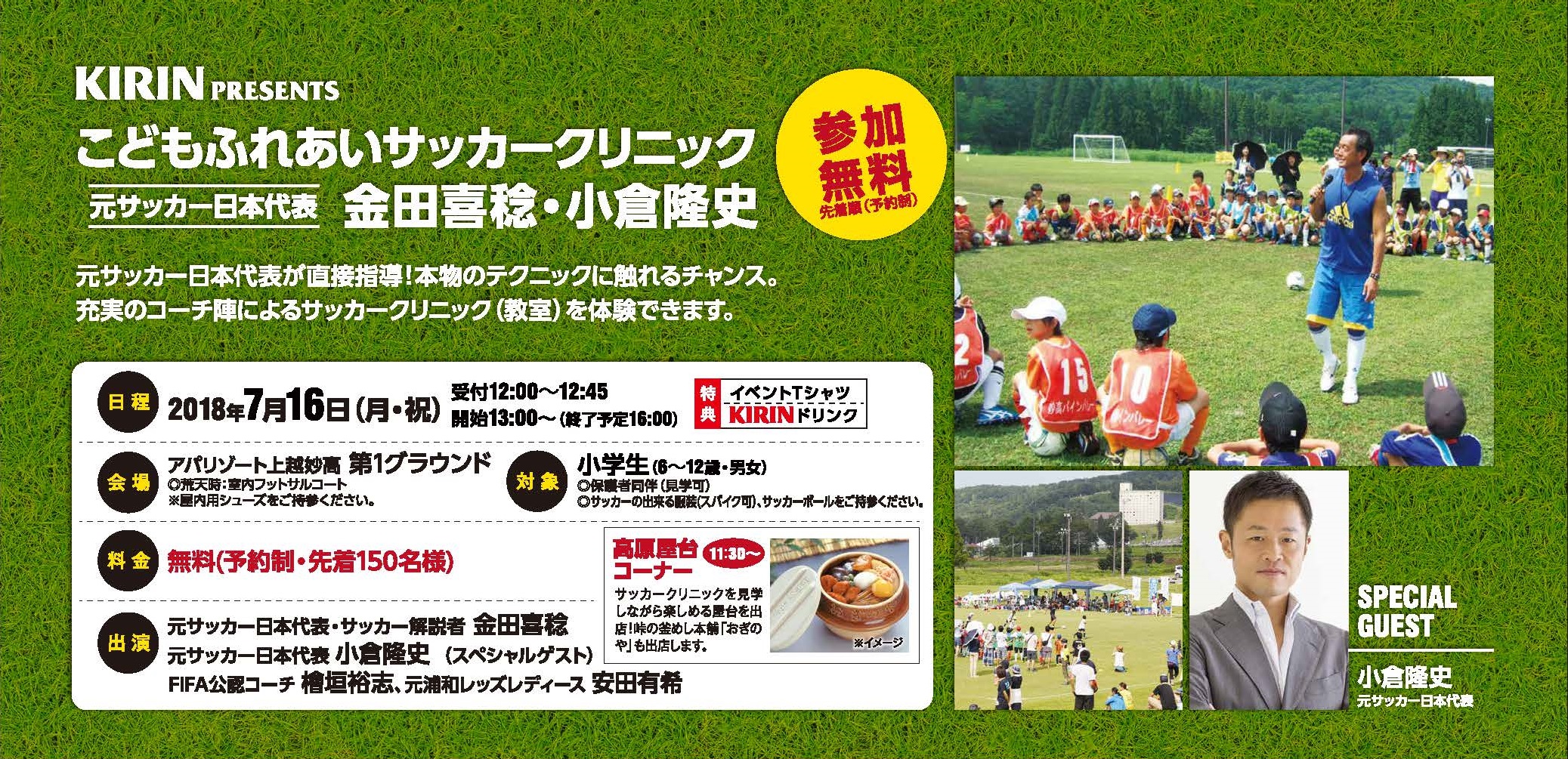 元サッカー日本代表から直接指導を受けられる「アパリゾート上越妙高サッカーイベント」が、7月16日に開催されます。