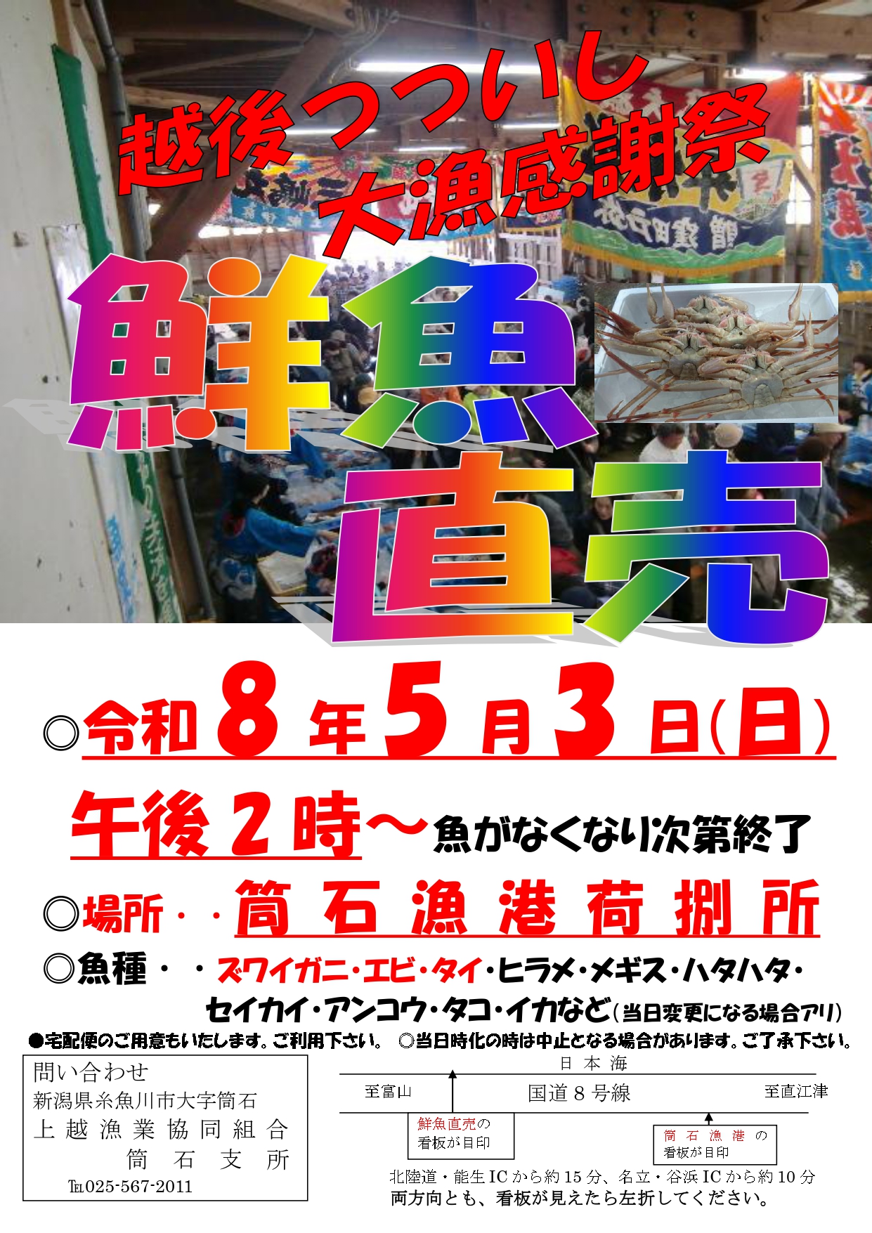 ■問い合わせ:上越漁業協同組合 筒石支所 TEL 025-567-2011