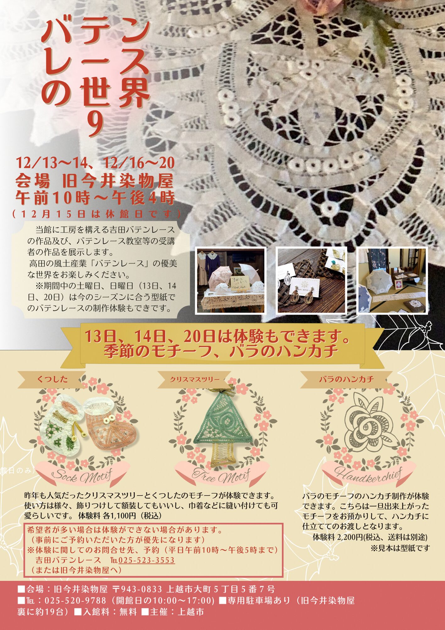 ■内容:雪国高田の風土産業「バテンレース」の制作体験ができます。