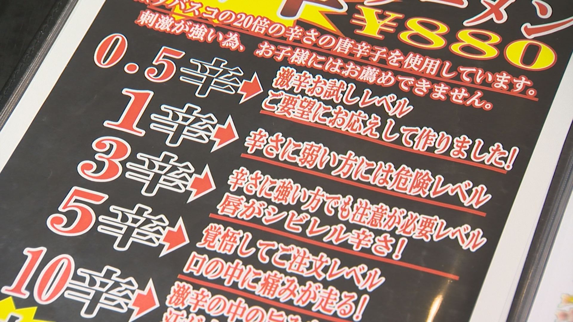 メニュー表には“ご注文前に一度胸に手をあてて考えるレベル”との表記が……。まさに火を噴く辛さ、ドラゴン級の激辛ラーメンです。
