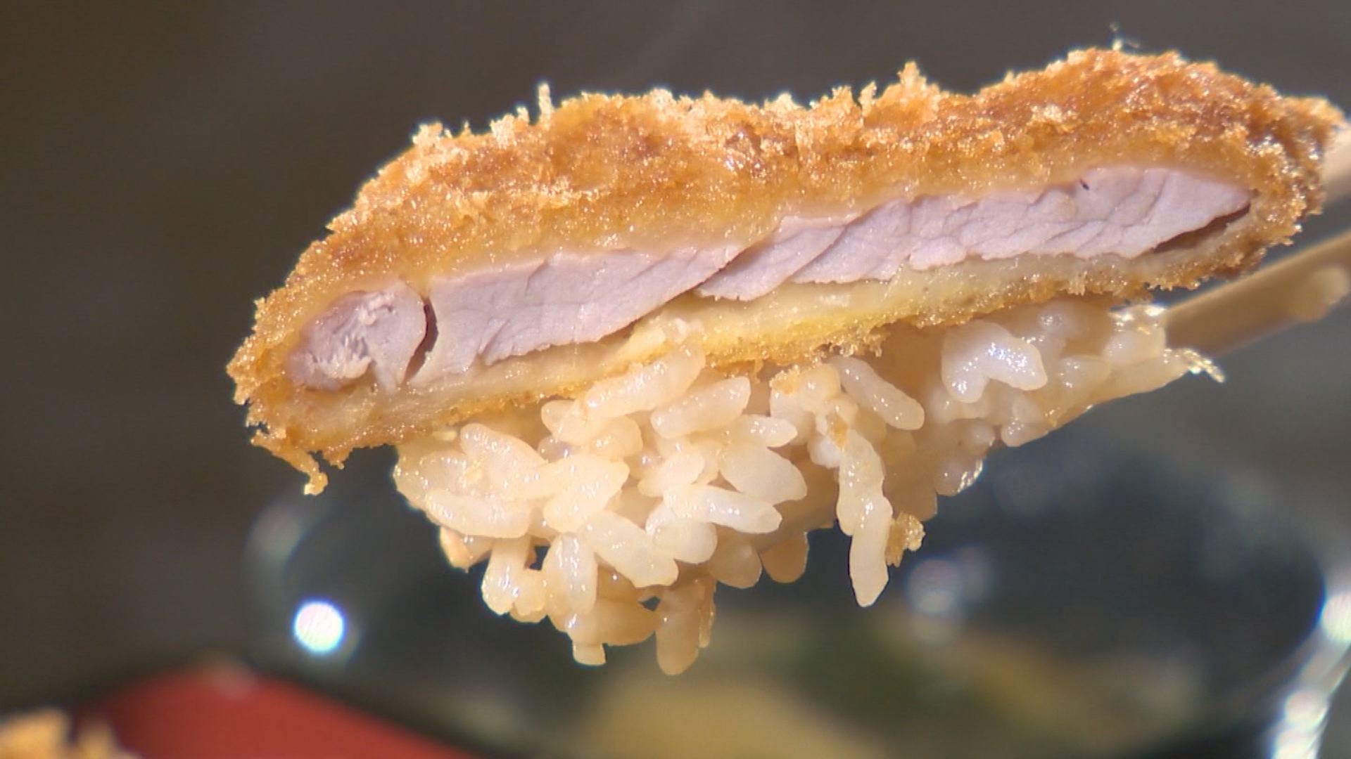 地元から仕入れたヒレ肉を使用していて、筋が無く柔らかいので、お子さんや年配の方にも大人気!ご飯は地元産・コシイブキを使っています。