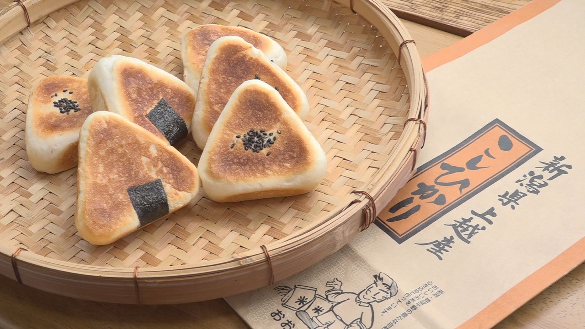 定番の菓子パンや総菜パンなど常時30種類ほどが並ぶ店内。なかでもお店一押しが「おにぎりパン」。幅広い世代に人気の野沢菜や肉みそ/150円(税別)がおすすめです。