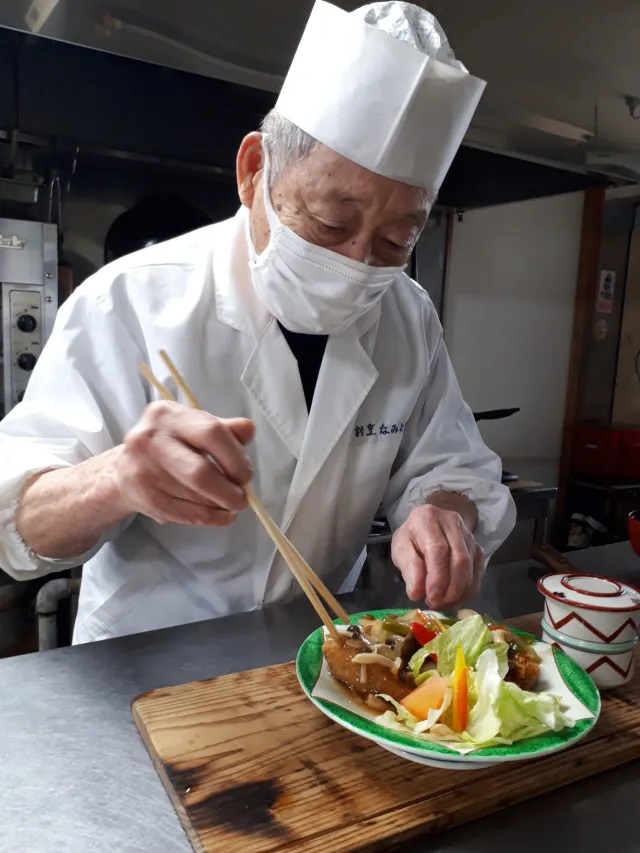 ご主人の山内勝彦さんです。17歳で日本料理の道を志し東京などで修行を積んできました。食の展覧会などに出店するなど料理人歴60年以上、熟練の技が光る数々の料理を提供し続けています。