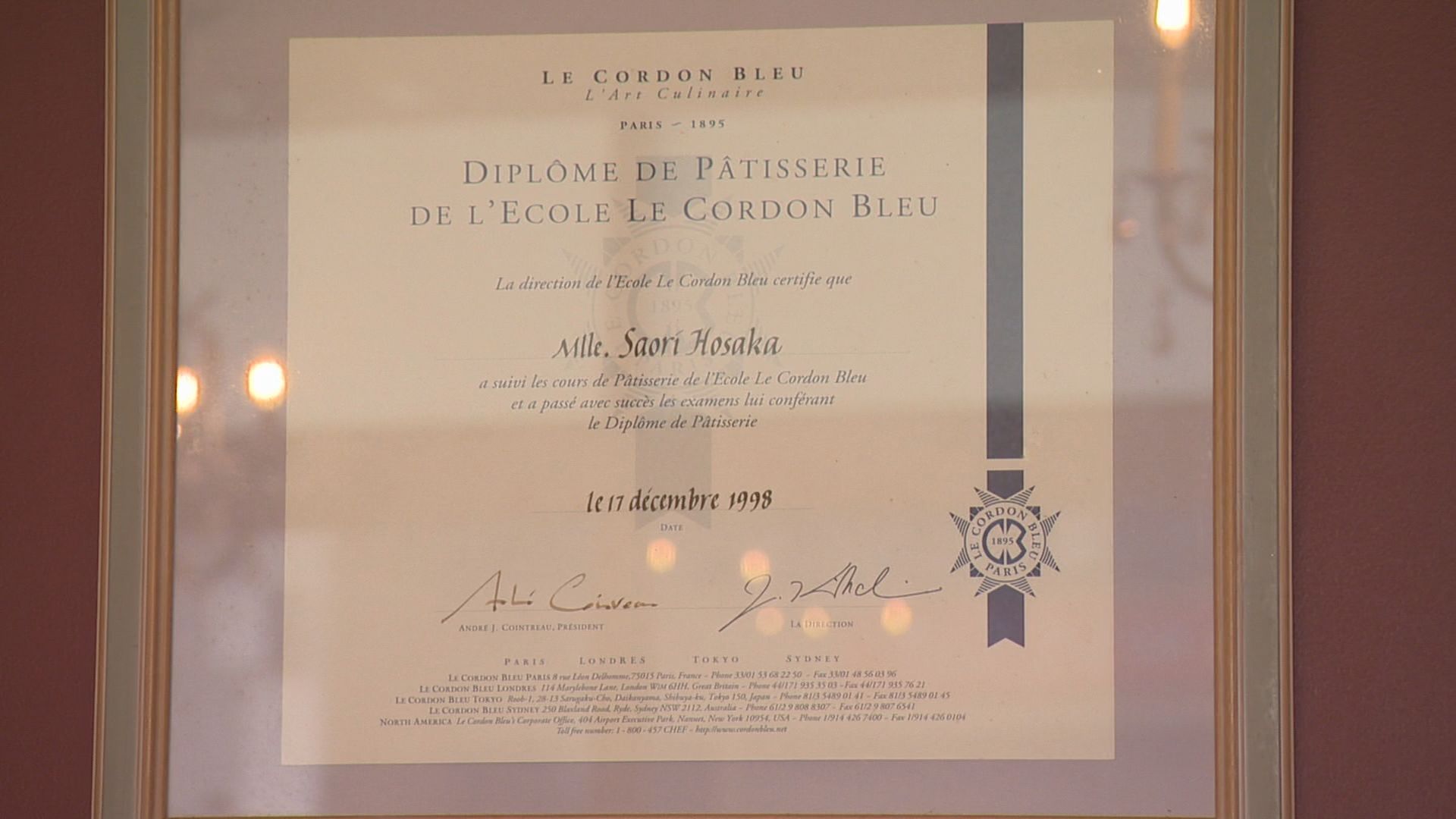 ル・コルドン・ブルー卒業証書