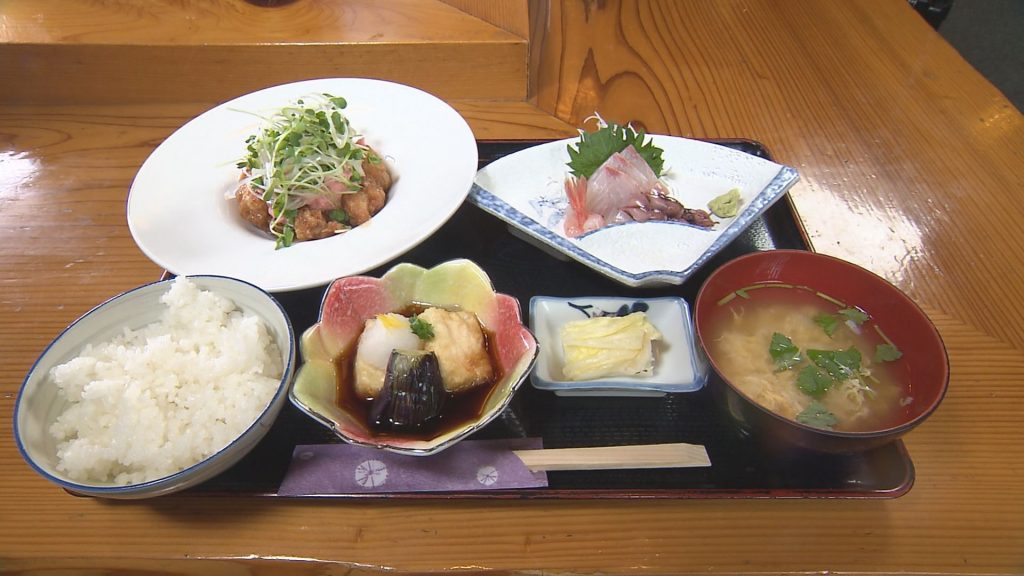 小鉢も日替わり。この日はダシがしみ込んだ豆腐とナスの揚げびたしでした。