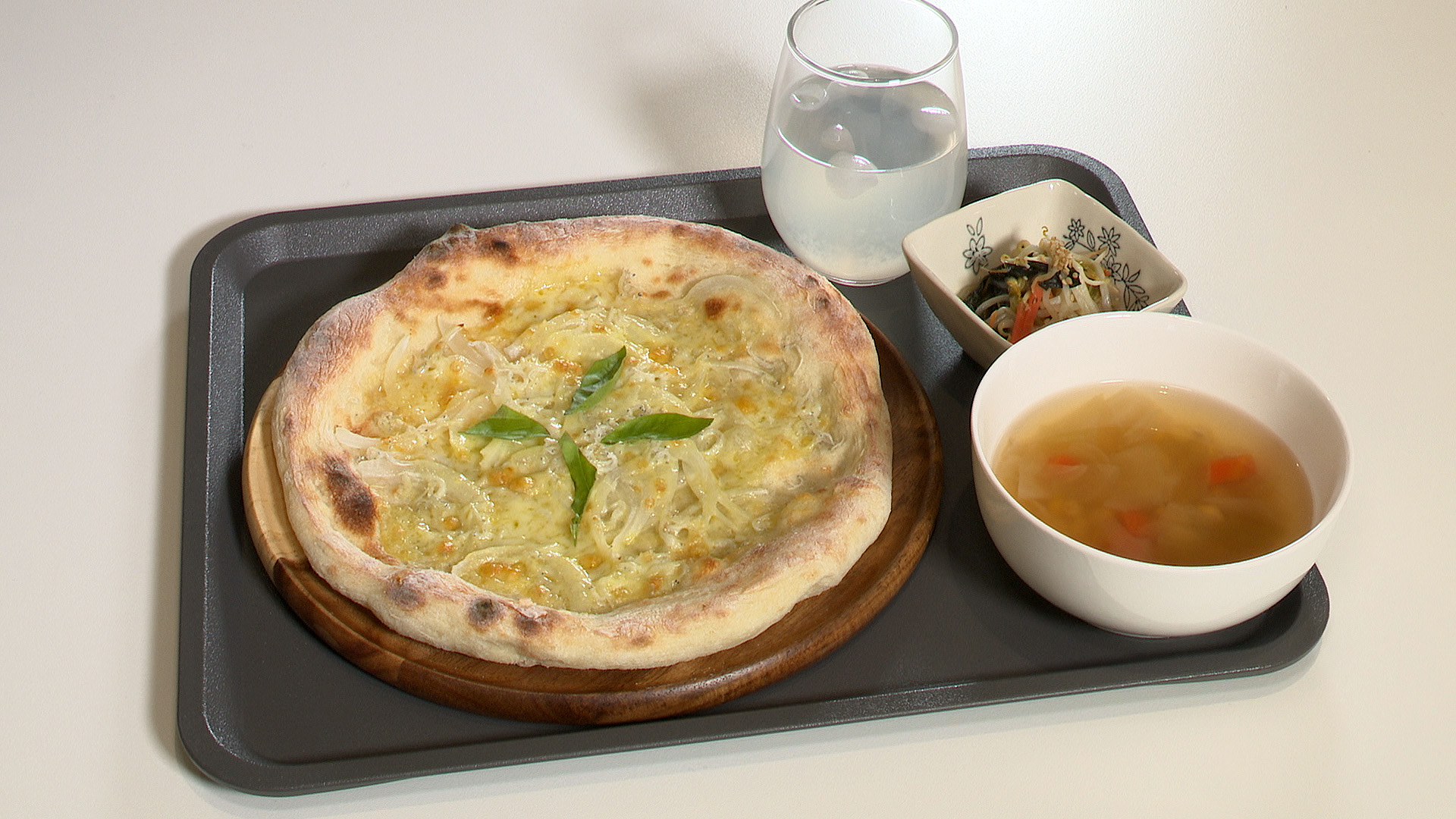 ピザは自家製トマトソースの上に、ベーコンやチーズをのせた「くじらピザ」、タマネギ、シラス、チーズをのせた「しらすピザ」、トマトソースと一緒にたっぷりのコーンとマヨネーズが楽しめる「コーンマヨネーズピザ」の3種類の中から選べます。