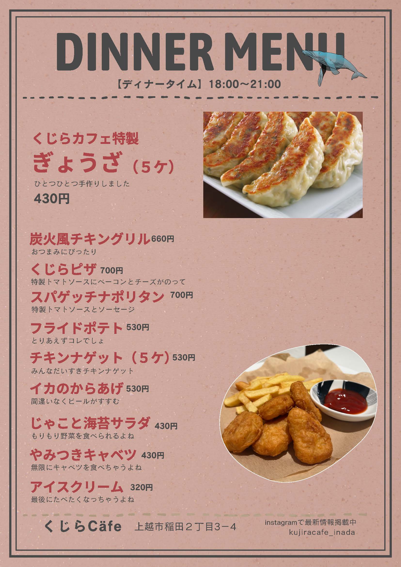 上越市稲田2丁目の稲田商店街に、手延べピザやギョウザなどを楽しみながらゆっくりと過ごせるカフェ「くじらcäfe(カフェ)」が9月にオープンしました。