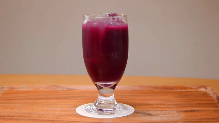 「店のメニューでも使っている『マスカットベーリーA』というブドウ。もともと上越で生み出されたワイン用にも使われている品種で、一番おいしい時期に収穫してジュースにしている。こちらのジュースは果汁100%で砂糖は使っていないんですけど、濃厚な甘さのあるジュースです。小さいお子様から年配の方まで幅広く楽しんでいただいています」
