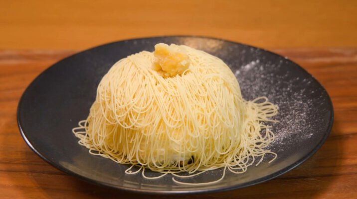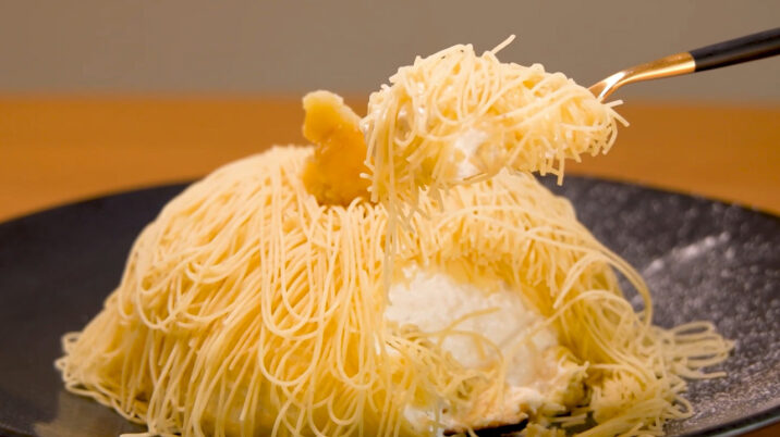 「アマヤファームでは栗も栽培していて、自家製の栗のモンブランを提供しています。中身はシフォンケーキ、クリーム、栗の甘露煮、メレンゲのお菓子が入っていて、注文を受けてから作っています。見た目は大きいけど、結構ふわふわなので、軽くお召し上がりいただけるかと思います」
