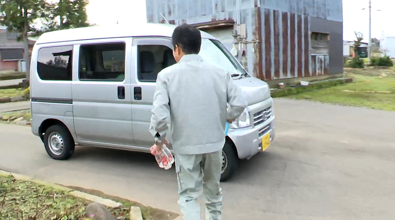 配達も梨本さんたちが行っています。三和区内やお隣の頸城区など、二手に分かれて200軒のお宅を回ります。とにかく、走る、走る、走る。 とても60代後半とは思えないフットワークの軽さです。瓶を回収して保冷剤を手際よく交換します。
