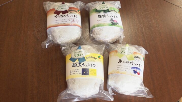 ソフィーのシュトレンは、上越妙高駅西口の土産店「寄ってかんかね」や、駅構内の「さくら百嘉店」、エルマール1階のメイド・イン上越認証品コーナーなどで買うことができます。1個 1700円(税込)です。