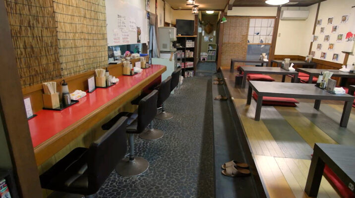古民家風で広々とした店内には、カウンターと小上がり、合わせて40席以上があります。家族連れにも人気のお店です。