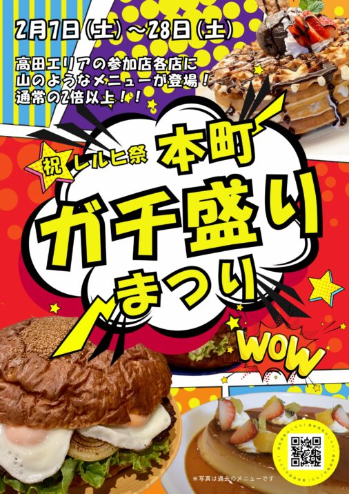高田駅周辺の飲食店でレルヒ祭の開催をを祝して、恒例の「本町ガチ盛りまつり」が2月7日(土)から始まります。