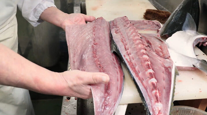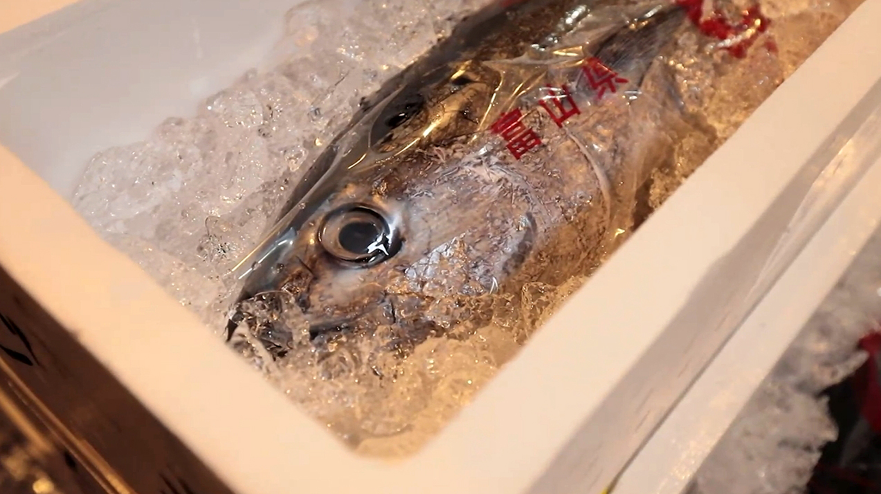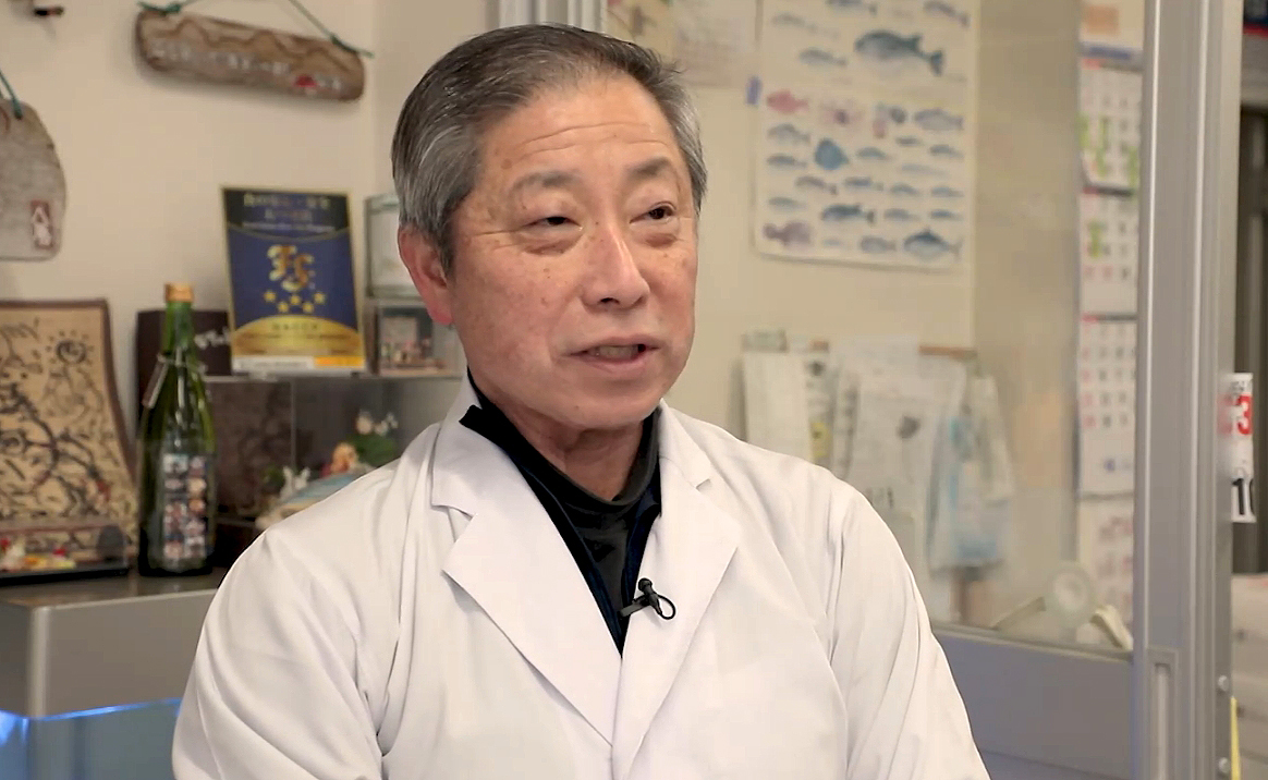 「魚の顔と姿を見たり、目玉の色を見たりします。そのあと、ちょっと触って、腹が柔らかいかしっかりしているかとかを確かめる。目利きは一瞬の判断。時間をかけるものではなく、何秒かでやるもの」