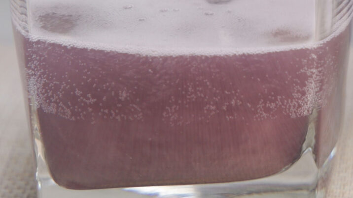 三和中学校ではオニバスも育てています。オニバスは紫色で、それと同じような色をしたコーラです。ラベルのデザインも生徒が考えました。
