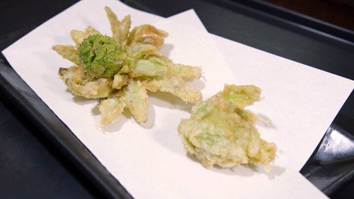 こちらはフキノトウ。口に入れた瞬間、フキノトウの苦さが広がり、春の訪れを感じさせます。