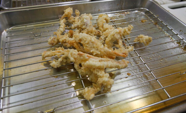 「昔はよく小正月にどんど焼きでスルメを焼いたりした。スルメが残った時にどうするかとなった時に、当時の主婦の方は水に戻して柔らかくして、野菜と一緒にかき揚げにしてご飯のおかずにして食べた。それまではスルメの天ぷらだったが、『する天』と名付ければ、もっといろんな人にもわかってもらえるという願いで作りました」