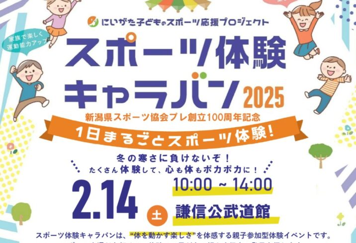 体を動かす楽しさを体感する親子参加型のイベント「スポーツ体験キャラバン2025」が2月14日(土)に謙信公武道館で開催されます。 スポーツ体験キャラバンは、新潟県スポーツ協会の主催…