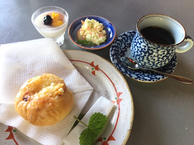 鈴木さんの家では自家製パンと寒天のデザートが提供された。