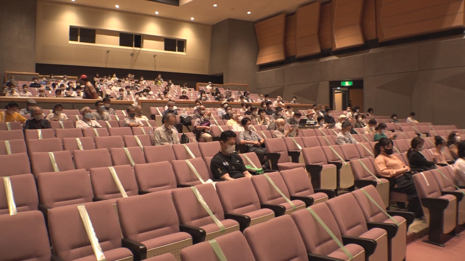 映画「GOZE」の先行上映会は当初4月26日の予定だった。これまでに新型コロナの影響で3回延期され、ようやくこの日の上映となった。会場では座席の間隔をあけるなど感染防止対策がとられるなか、約140人が映画を鑑賞した。物語の主人公は三条市出身で最後の瞽女と呼ばれた小林ハル。