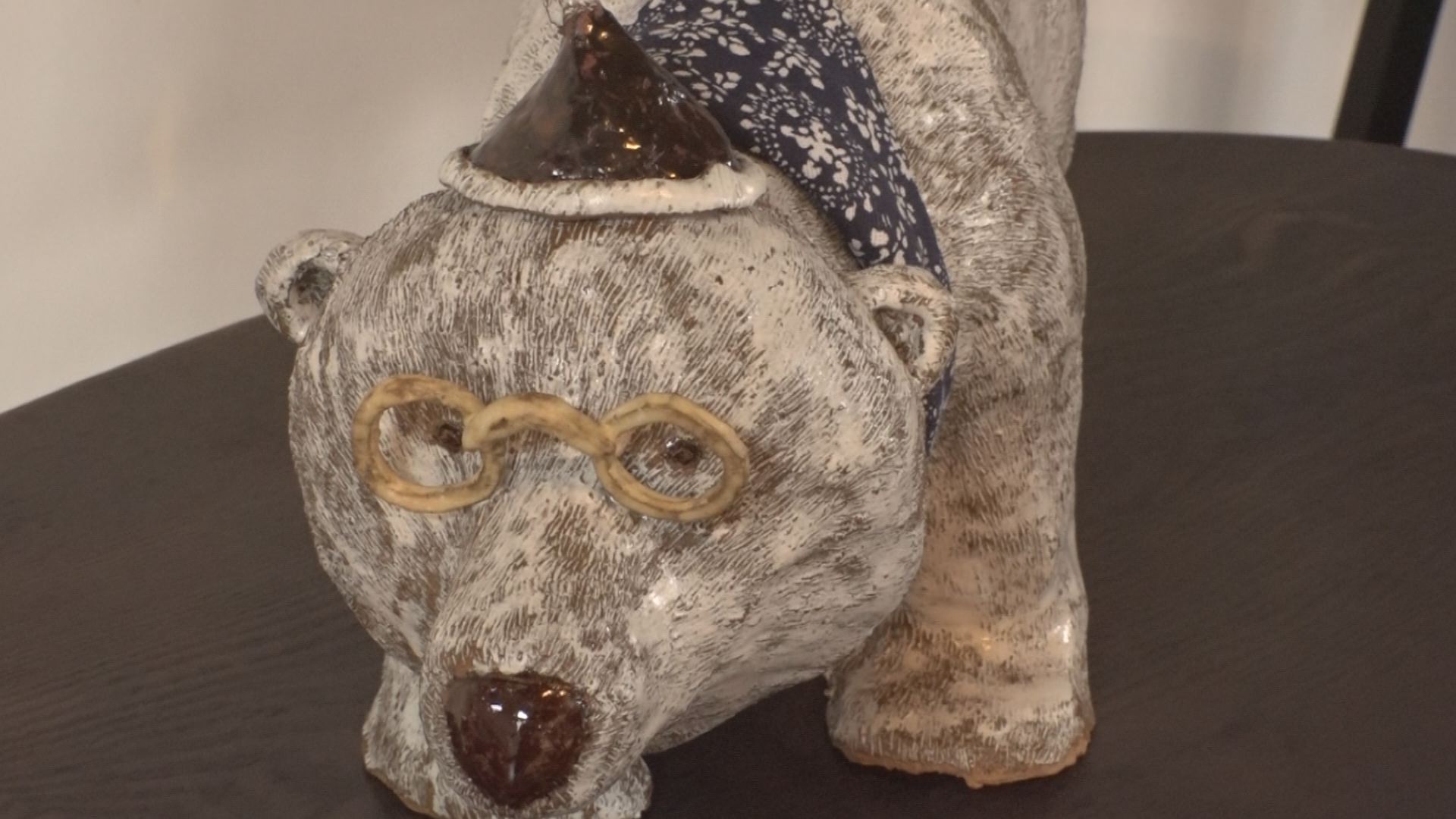 これは「來ON☆ZOO(らいおん☆ずー)」と題し、上越教育大学が昨年に続いて企画した。会場には、美術を学ぶ学生や大学院生など18人が制作したオブジェ38点が展示されている。オブジェは、陶器で作られたクマやヒツジ、細かい木を貼り合わせて作られたクジラなど様々。
