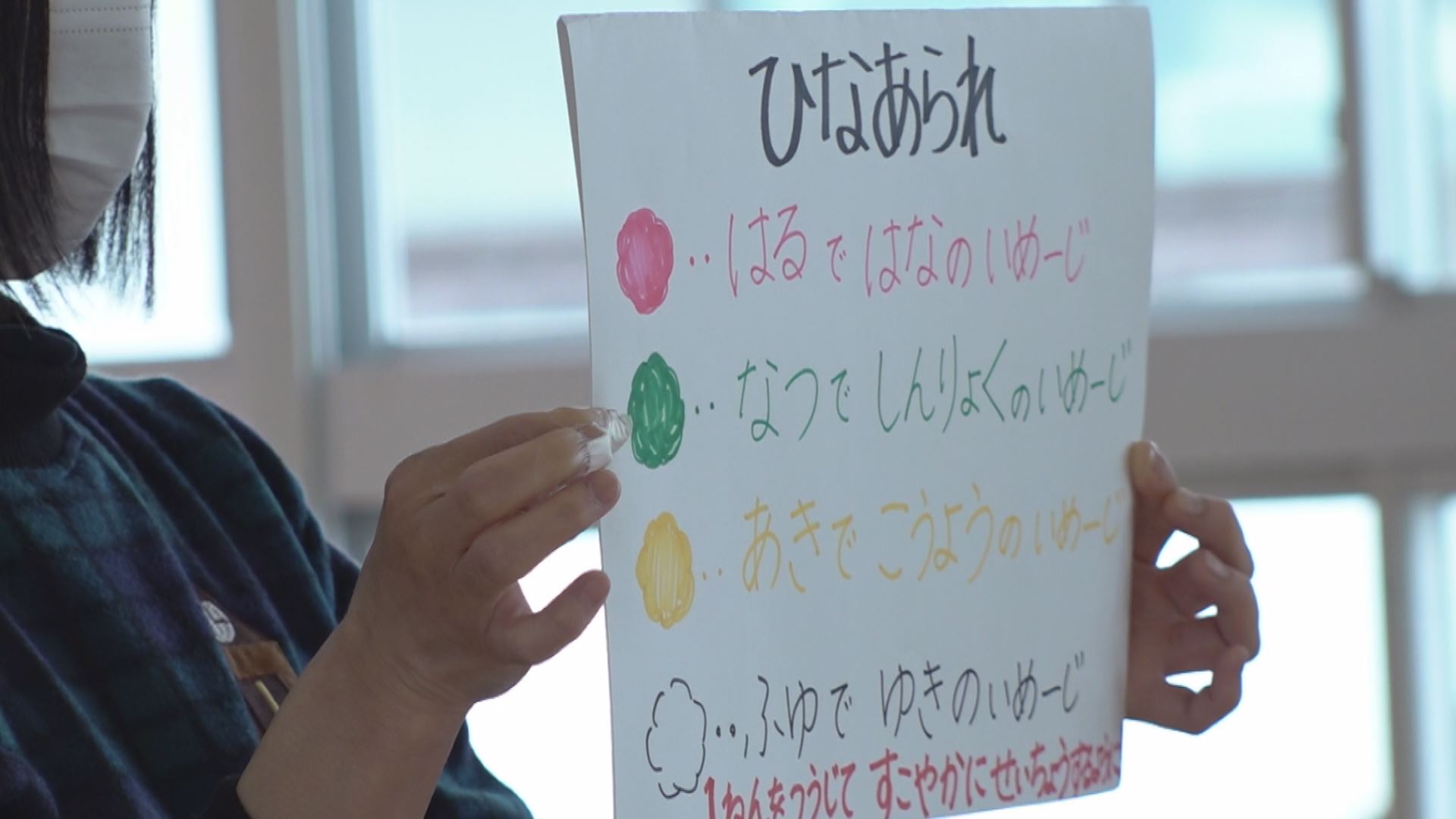 ひなまつりに参加したのは全園児およそ60人です。はじめに、ひなまつりの由来について話を聞きました。