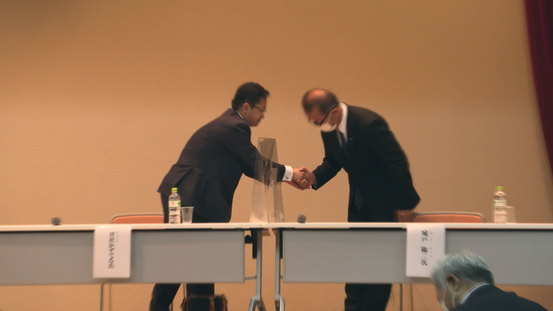 任期満了に伴い今月30日に行われる妙高市長選挙に立候補を表明している、妙高市の前観光商工課長の城戸陽二さんと、妙高市の前市議会議員の宮澤一照さんの2人による公開討論会が17日(月)、妙高市の新井ふれあい会館で行われました。