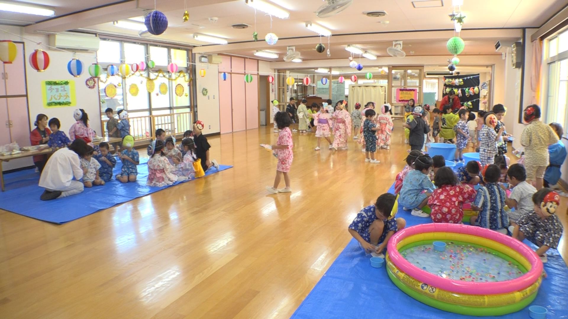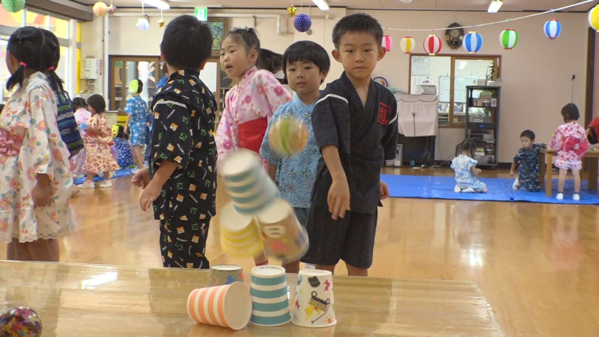 的あてやスーパーボールすくいなどを楽しむ夏祭りが、21日(月)に妙高市ときわこども園で行なわれ、園児が縁日気分を味わいました。