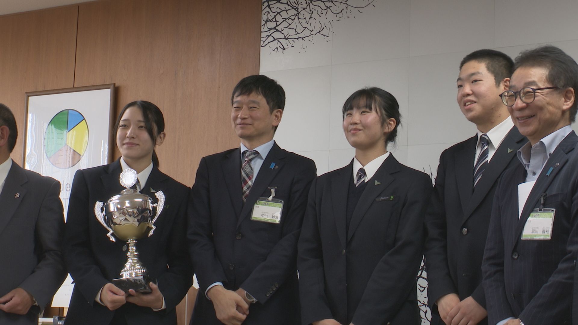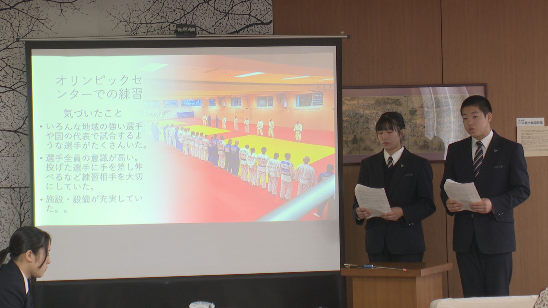 この夏、柔道を通じて国際交流を体験した生徒が上越市の中川市長に現地で学んだことなどを報告しました。
