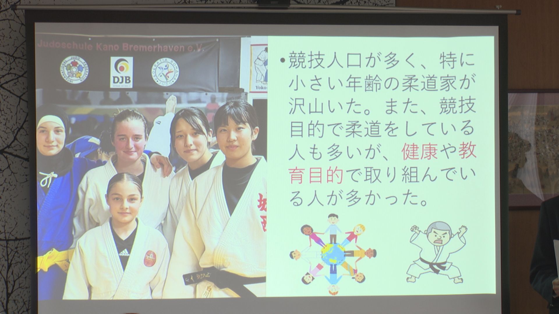 交流したクラブでは試合の勝ち負けでなく相手に敬意や感謝を伝えるスキンシップを大切にすることと、健康づくりや趣味として柔道を楽しんでいたことが印象的だったということです。