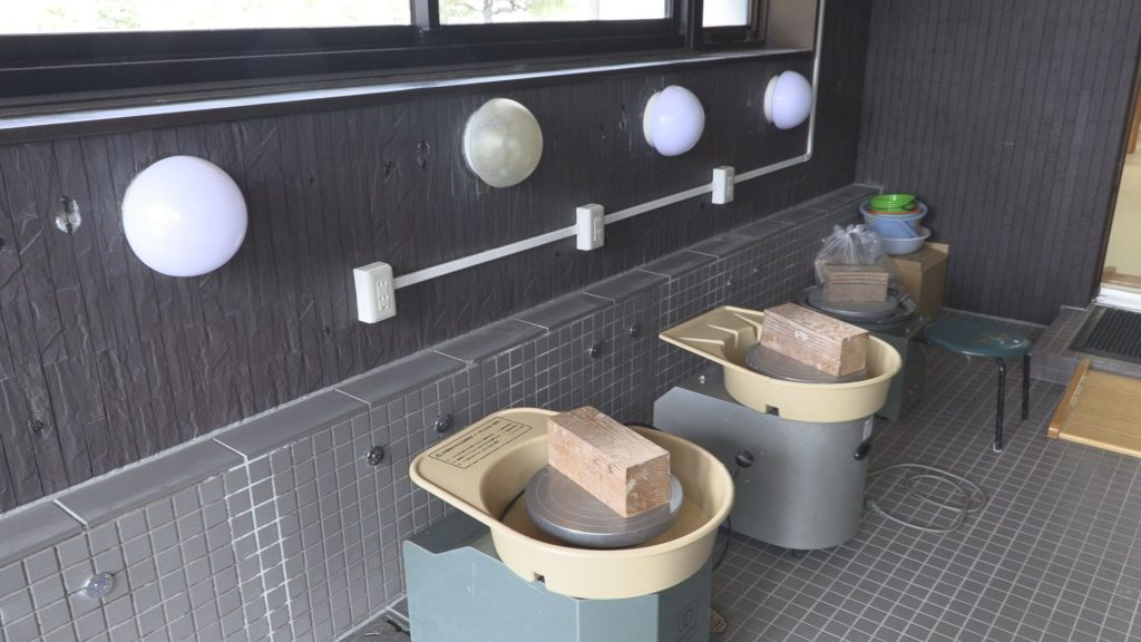 その奥の浴室だった場所では、洗い場にはろくろが並び、粘土の汚れを気にせず創作に打ち込むことができるようになっています。外には陶芸窯も新設されました。