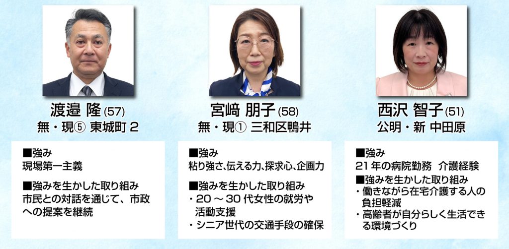 ※名前、年齢、党派、〇数字は市議当選回数、住所
