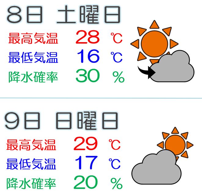 ・気温は土曜日よりもさらに上がり、真夏日一歩手前の29度予想