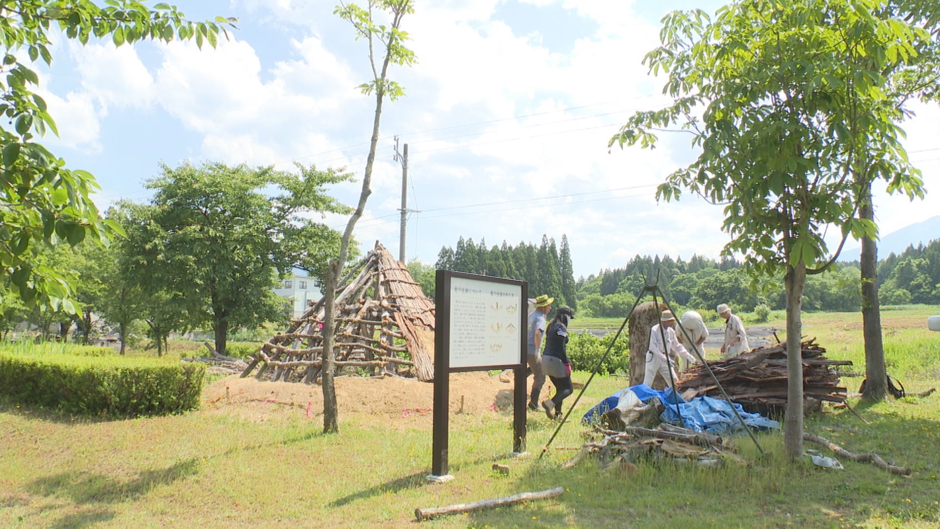 作業をしているのは、縄文文化の発信をしている市民団体「縄文学校」です。中郷区では縄文時代の遺跡が70か所以上見つかっていて、「縄文学校」が竪穴式住居の復元を去年6月から始めました。