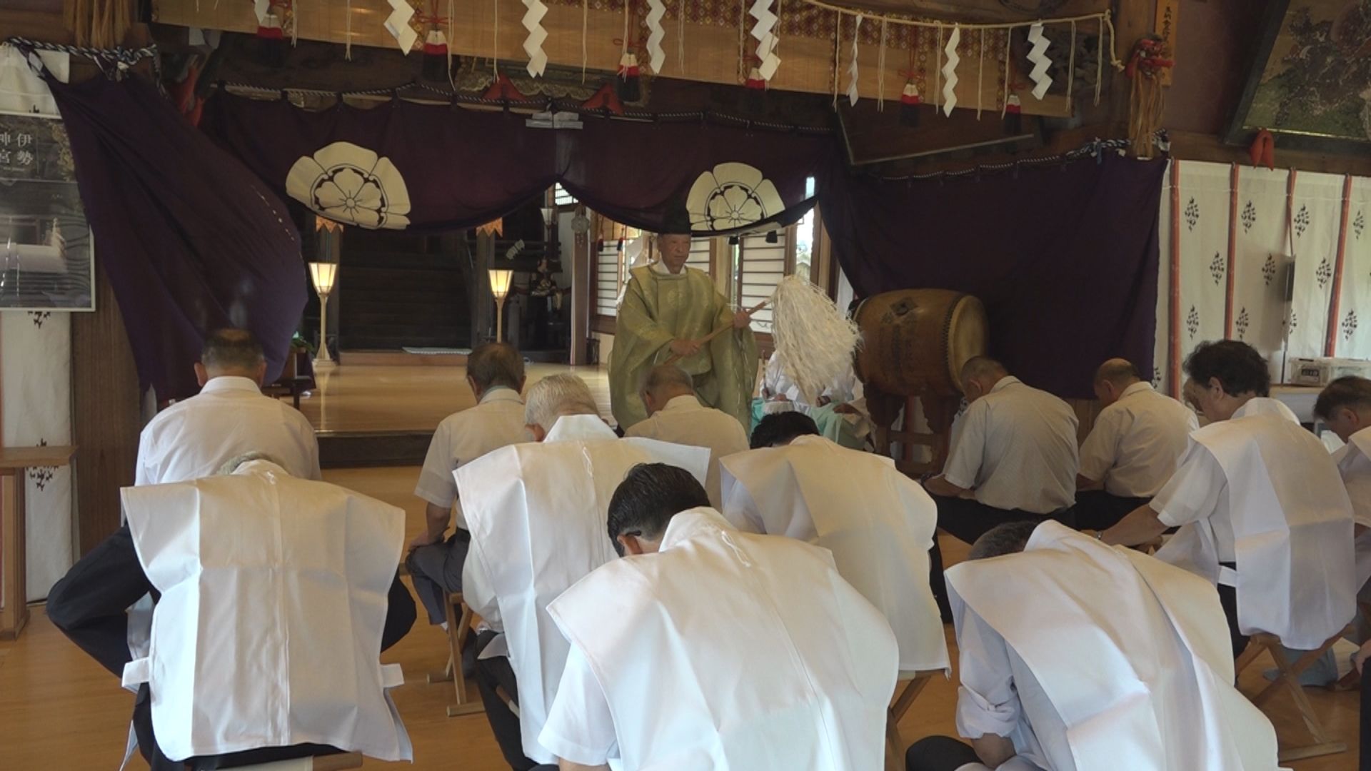 きょう(23日)は日中の気温が高田で35度を超える猛暑日となる中、関係者が参列し、神事が執り行われました。