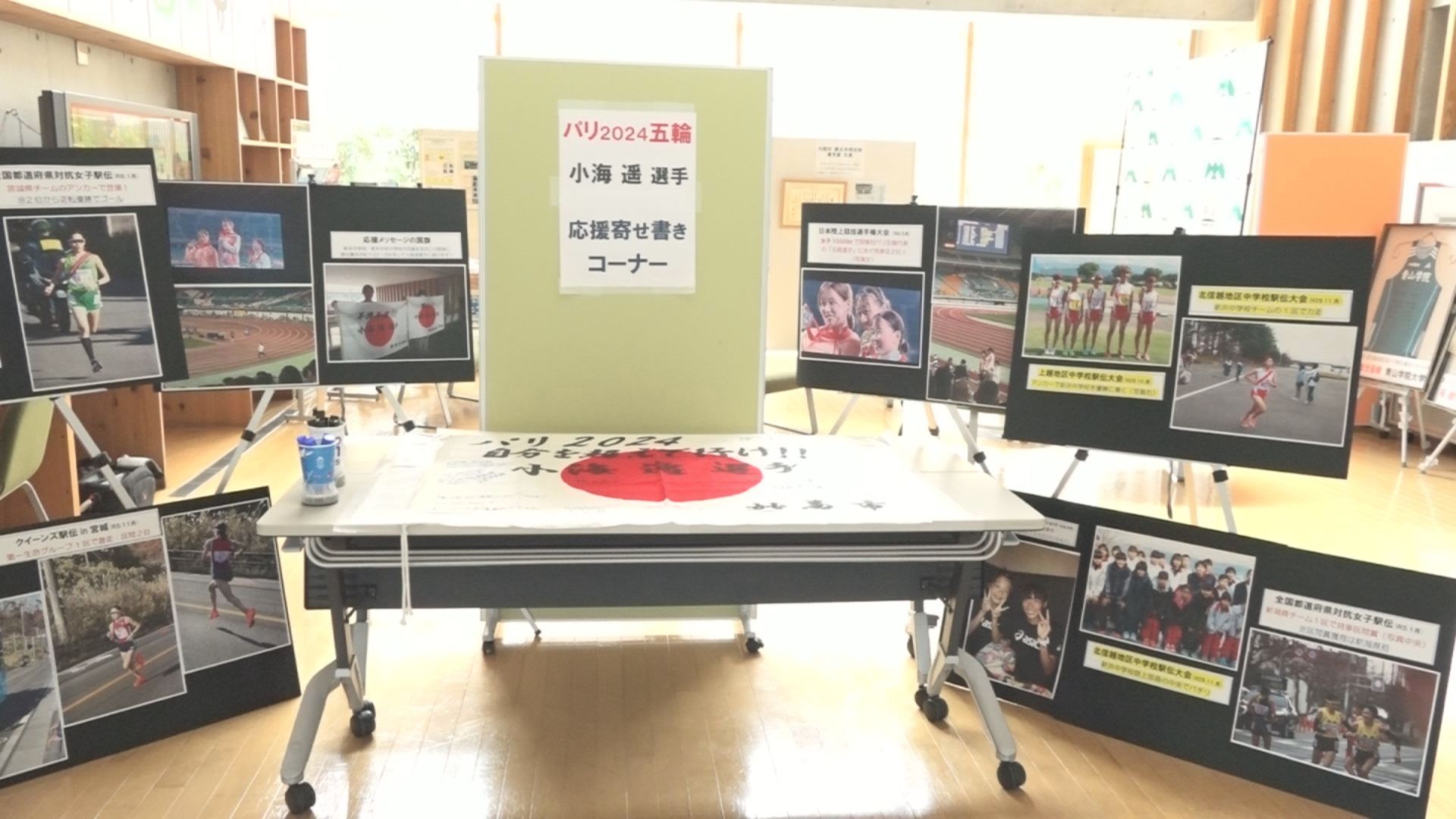 パリオリンピック女子1万メートルに出場する妙高市出身の小海遥選手にエールを送ろうと、妙高市役所に寄せ書きのコーナーが設けられました。