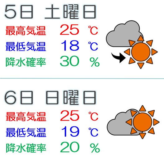 ・雲は多いものの、日中は時々晴れて雨の心配はいらない天気に