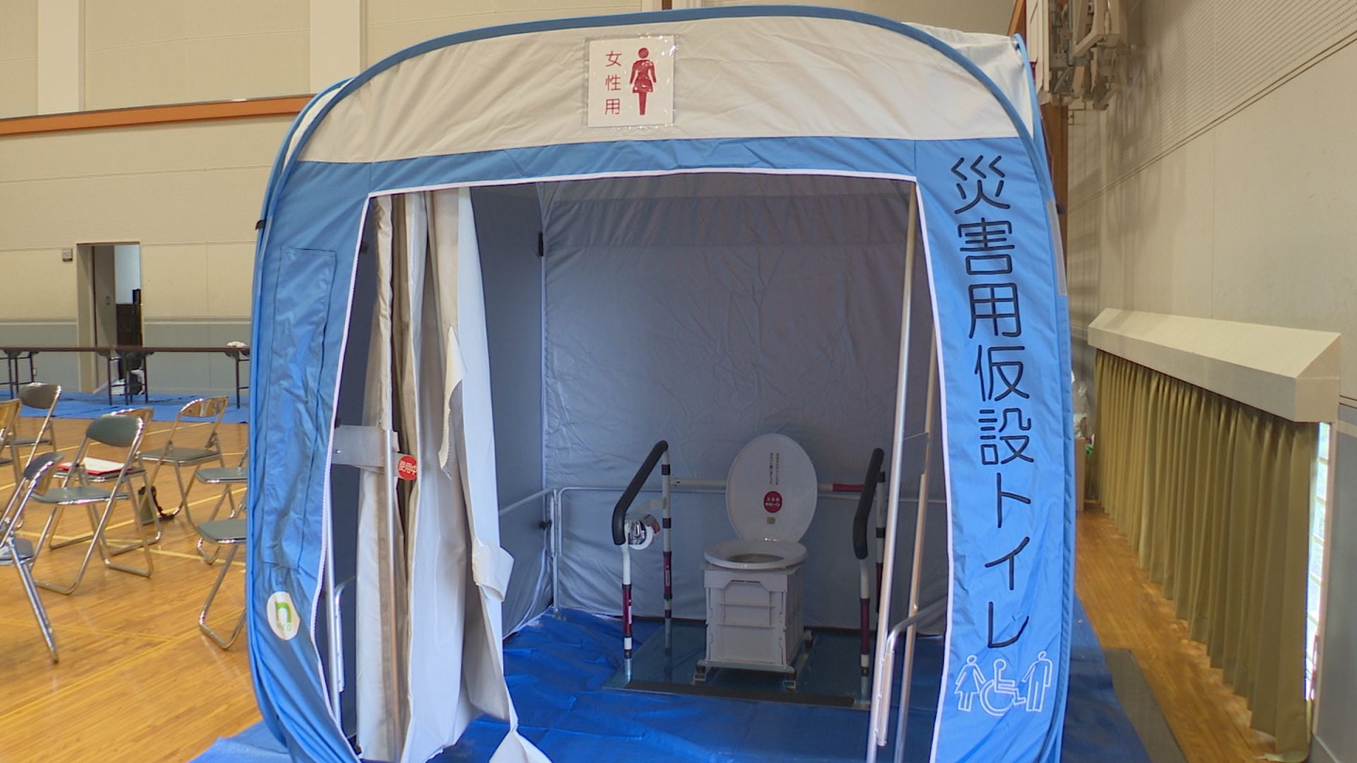 中郷区内にある5つの避難所には携帯トイレがそれぞれ1、2個、上越市全体では携帯トイレ13万個、仮設トイレ21個が備蓄されています。