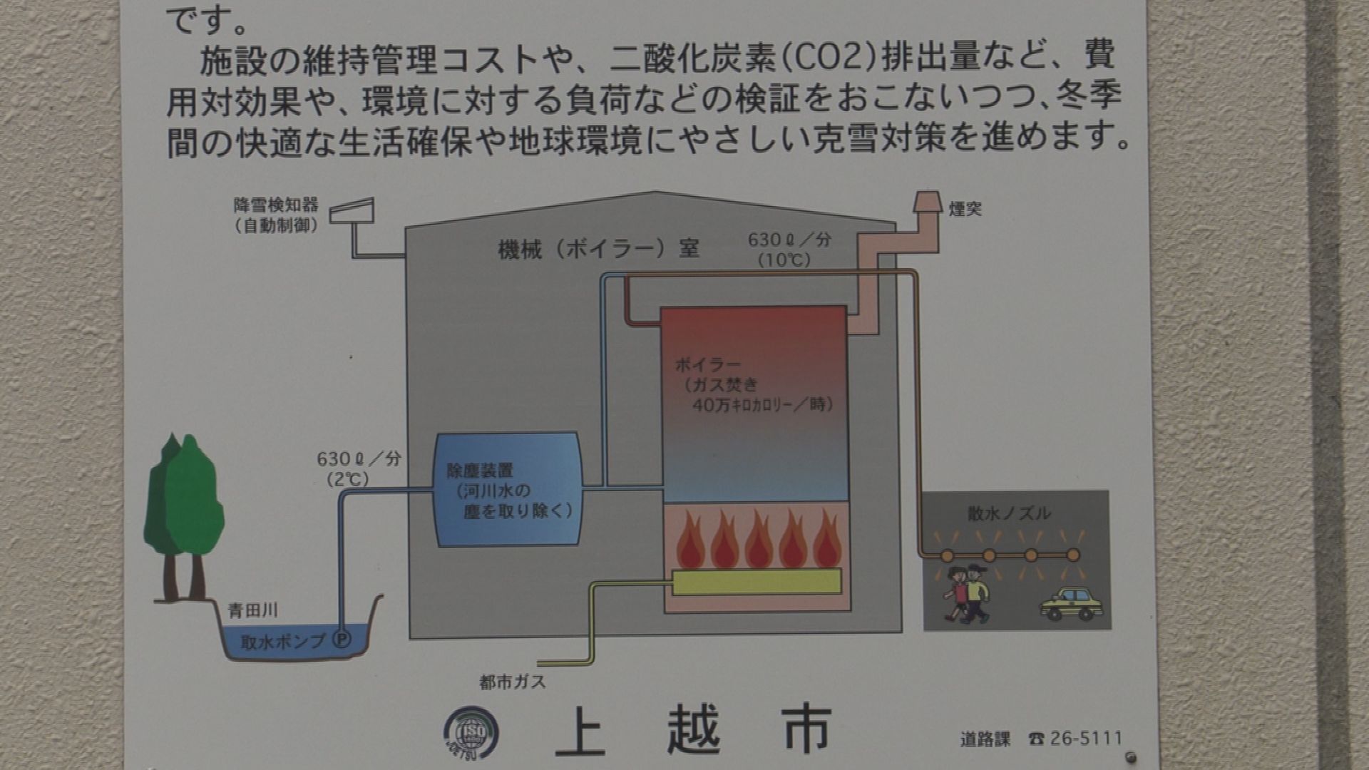地下水を使わず高田城址公園の外堀からくみ上げた水を温めて道路に散水する加温式消雪パイプが、新たに上越市内の2か所に設置されることが明らかになりました。
