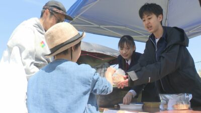 48回目の今年はメイン会場の妙高高原ビジターセンター前に、キッチンカーやテントなど全部で19ブースが並びます。笹寿司やたけのこ汁、ハンバーガーやアイスクリームなどの地元ブースのほか、山梨県の富士宮やきそばなど県外からの出店もあり、飲食が楽しめます。