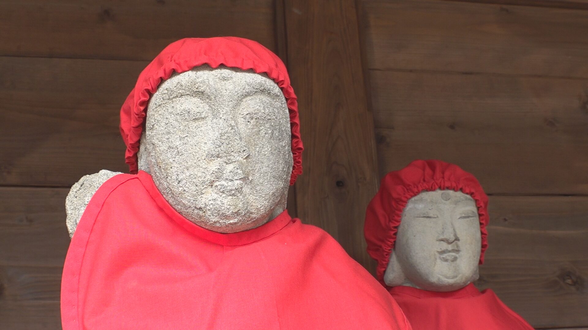 妙高市白山町の地蔵院にある地蔵の頭巾と前掛けが色あせたため、22日(月)に交換作業が行われました。