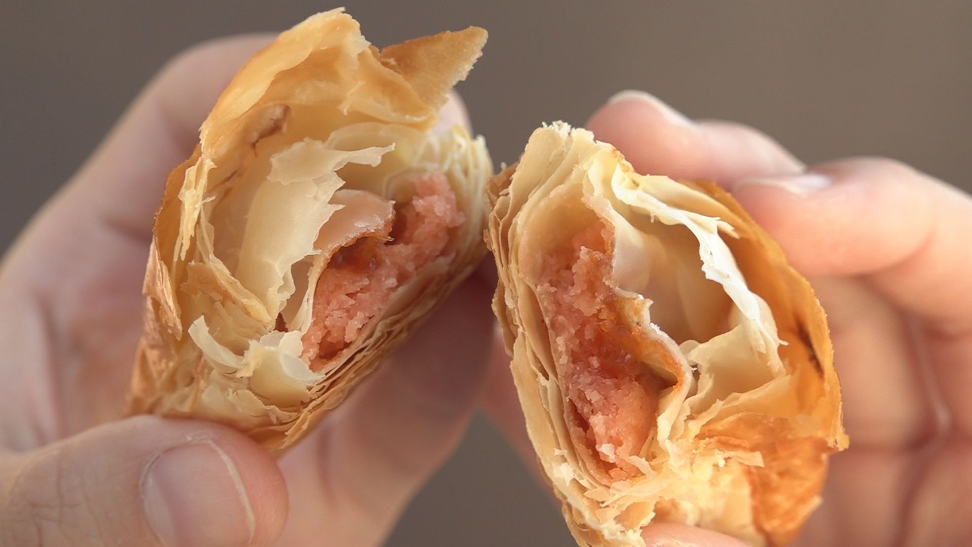 「イチゴのような味で、パイのパリパリした食感と合い美味しい。『こんな菓子があったらいいな』というのが今まで形になる経験はなかったので、自分たちの願いが形なりよかった。この菓子を通して柿崎の良さを知り、好きになってほしい」