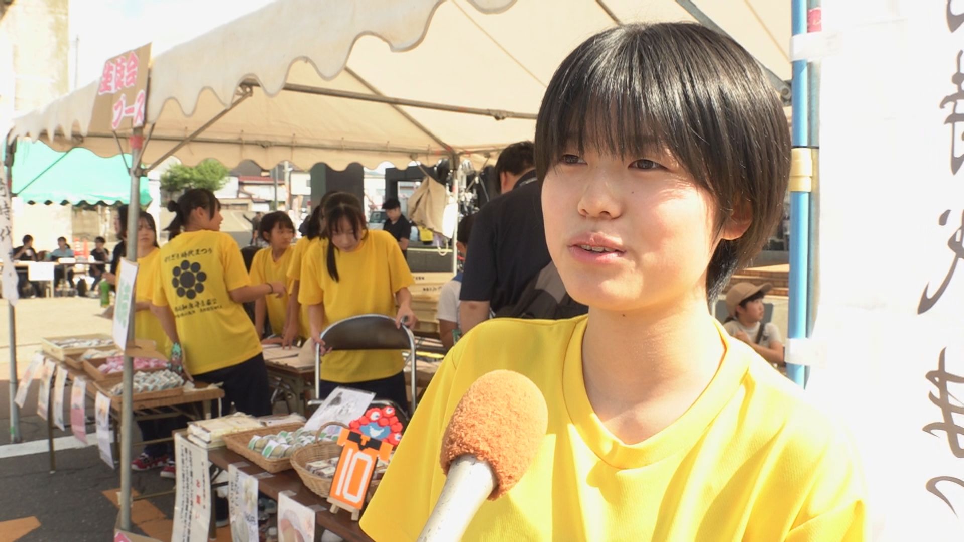 柿崎中学校の生徒は、地元の菓子店「御菓子処みやけ」と共同開発した菓子を販売しました。